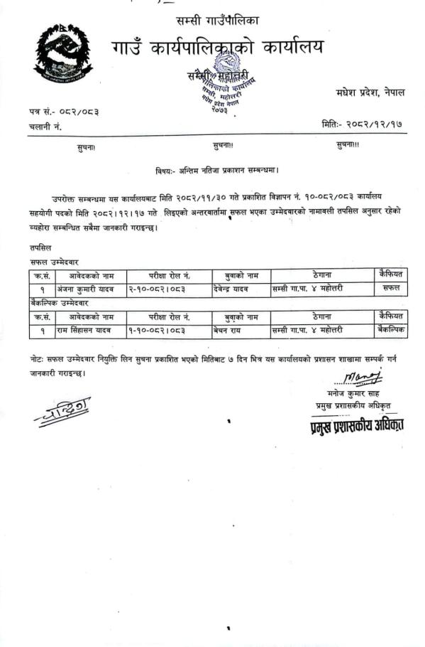 » अन्तिम नतिजा प्रकाशन सम्बन्धमा