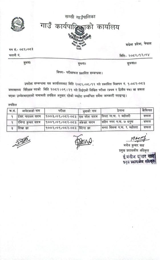 » परीक्षाफल प्रकाशित सम्बन्धमा