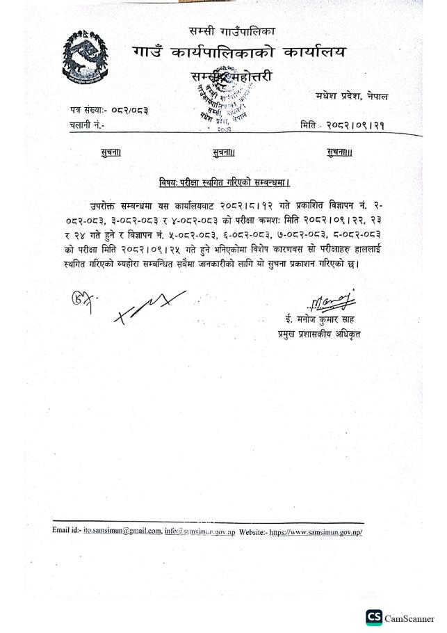 » परीक्षा स्थगित गरिएको सम्बन्धमा