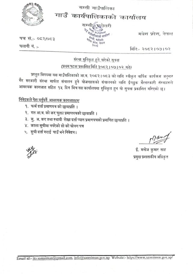 संस्था सुचिकृत हुने बारेको सुचना