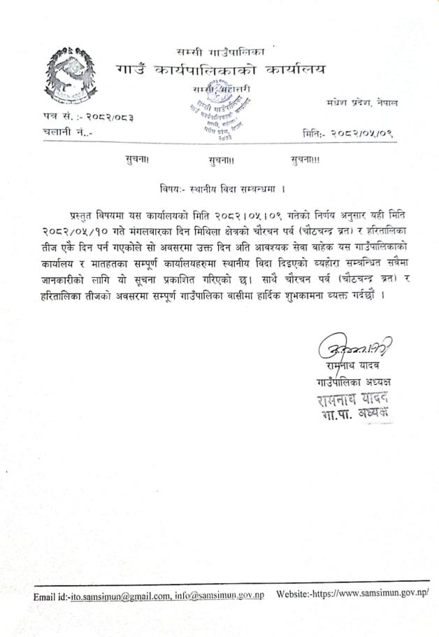स्थानीय विदा सम्बन्धमा