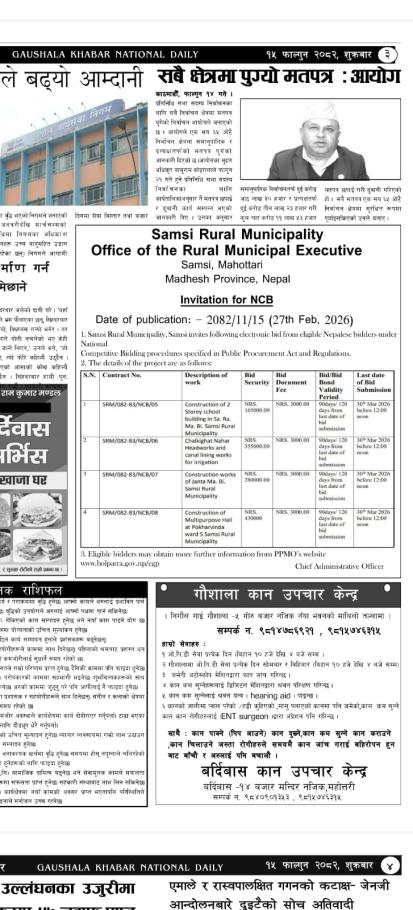 सार्वजनिक खरिद/बोलपत्र सूचना
