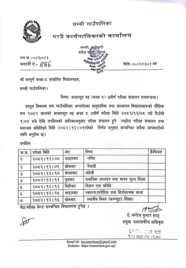 आधारभुत तह (कक्षा ८) उत्तीर्ण परीक्षा संचालन सम्बन्धमा