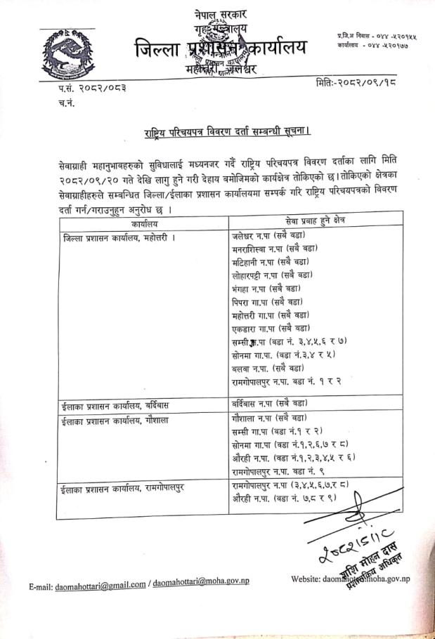 राष्ट्रिय परिचयपत्र विवरण दर्ता सम्बन्धमा