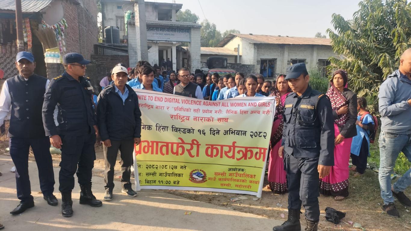 » लैंगिक हिंसा विरुद्धको १६ दिने अभियान २०८२ को समापनमा गरिएको प्रभातफेरि कार्यक्रम