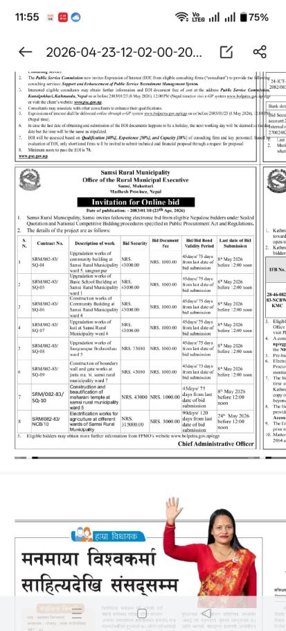 सार्वजनिक खरिद/बोलपत्र सूचना